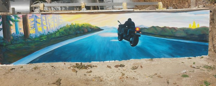 Дорожный пейзаж на стене